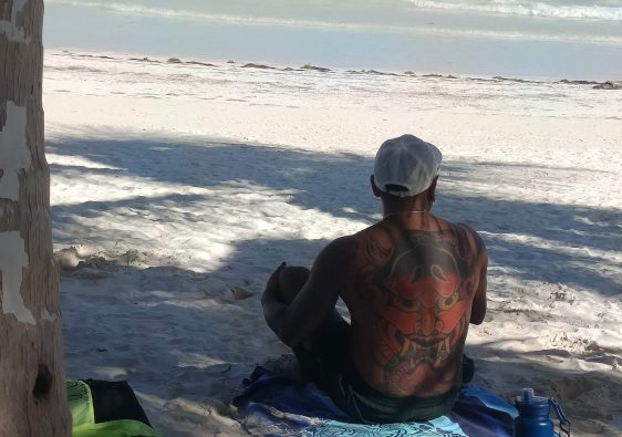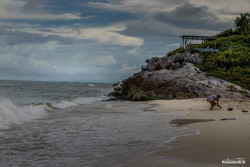 Sur la plage il y a un groupe de filles bretonnes. Elles sont arrivées hier et sont un peu déçu. Je leur dis que la belle plage est de l’autre cote. Elles me disent qu’elles savent mais qu’elles n’ont pas pu passe elles avaient leurs bouteilles d’eau et leurs cigarettes qu’elles n’ont pas voulu jeter. Elles y retourneront demain. On échange quelques lieux à visiter, elles ont prévu d’aller à Bacalar, c’est un bon choix.