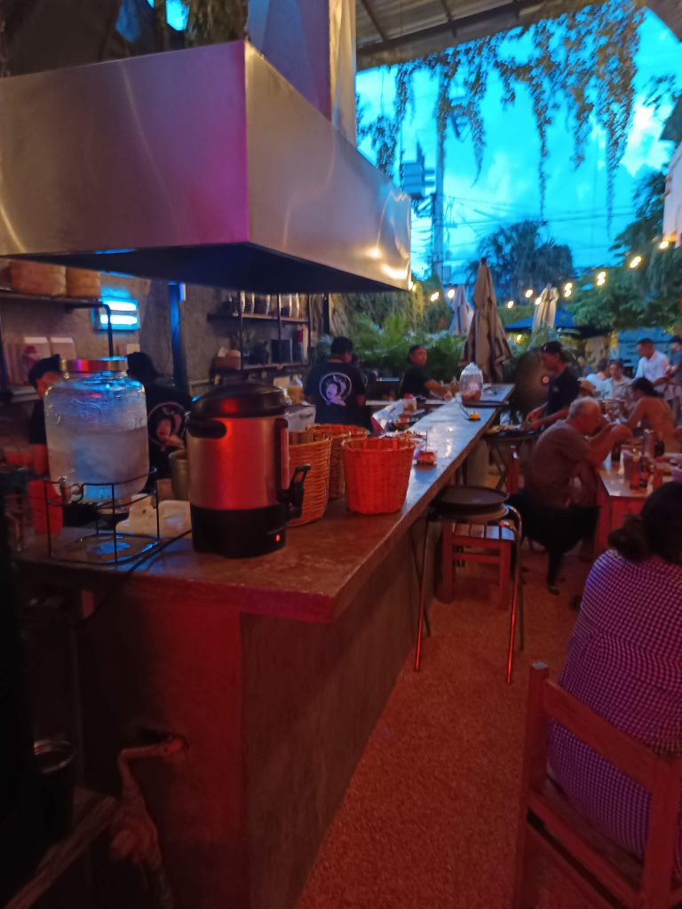CE soir là nous mangeons dans un bar restaurant qui fait du poisson. Il nous faut attendre quelques minutes car c’est complet, puis on nous installe sur la terrasse.