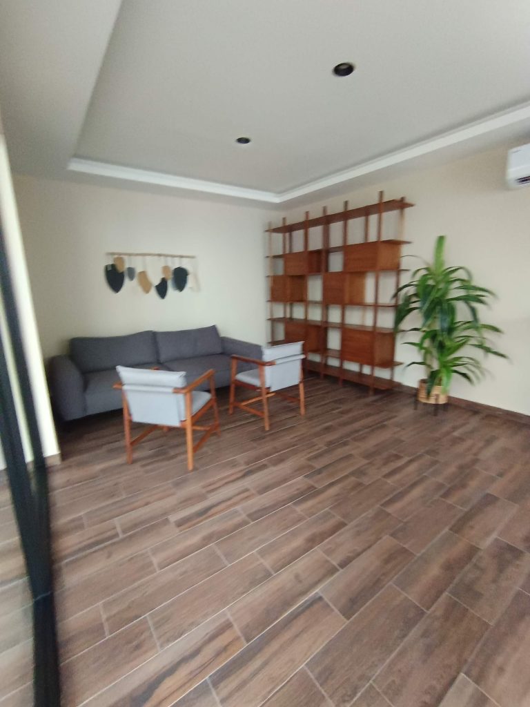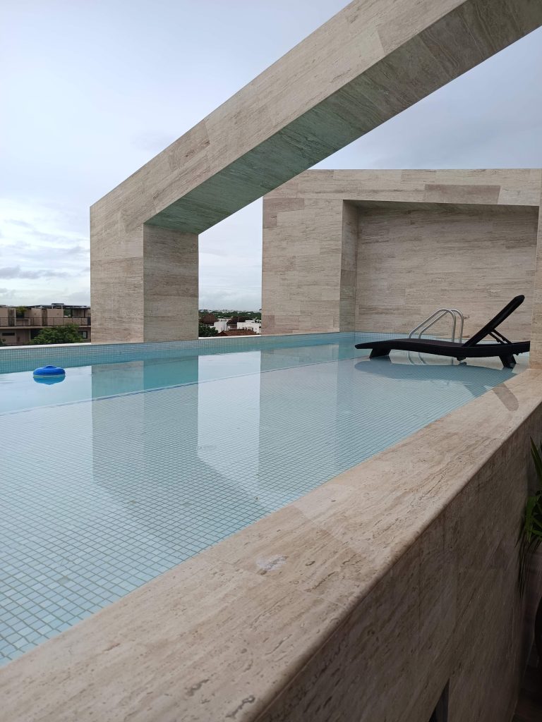 Le matin, le ciel est vraiment bas, Bastien travaille dans le coworking, et on en profite pou faire un petite baignade dans la piscine.