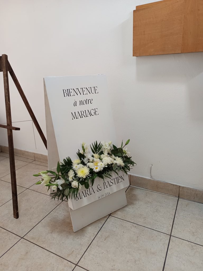 Mais avant ça les derniers papiers à faire pour Maria et Bastien avec une surprise pour eux, l’horaire sera décalé de 14h à 12h30. Ca change un peu les plans car les invités qui arrivent directement à la maison, arrivent à 15h00. Il devrait donc y avoir un trou entre les deux.