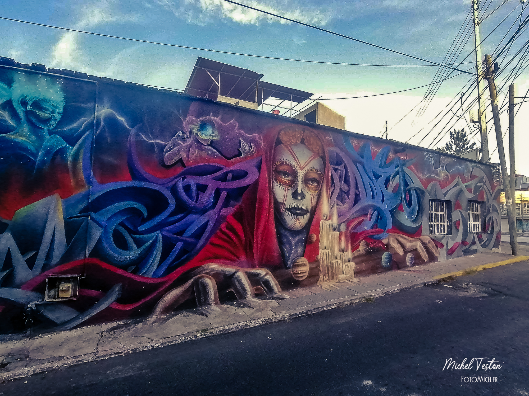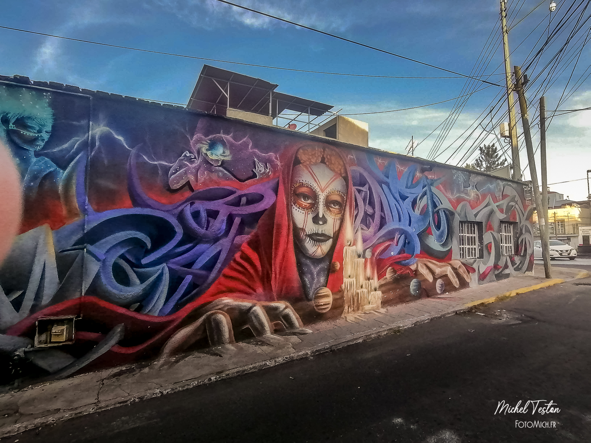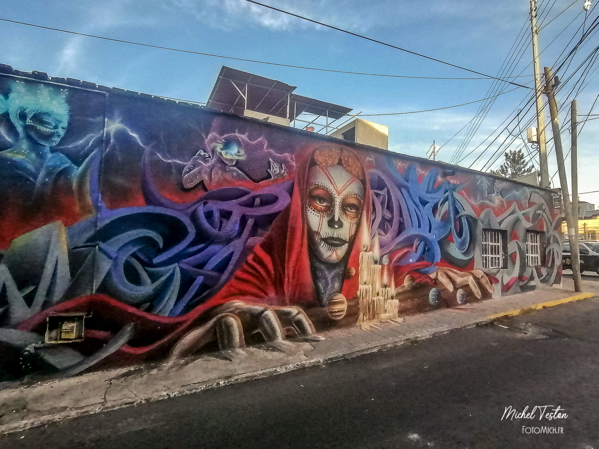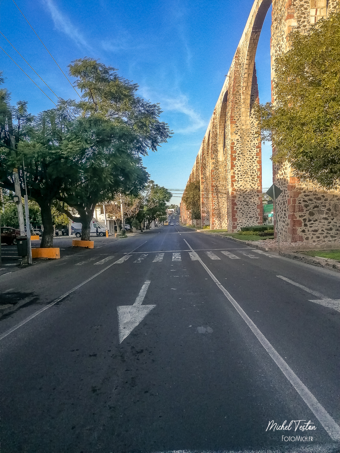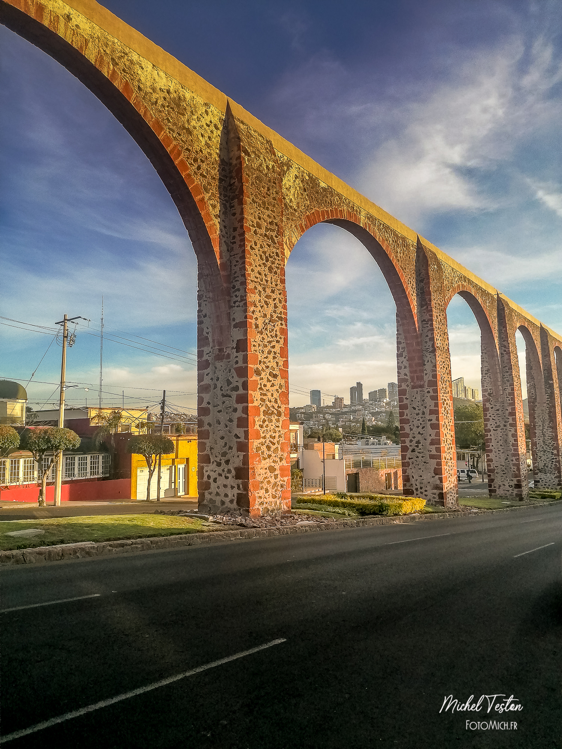 Il fallait trouver un peu de courage pour se lever de bon matin car l’instant est cours dans ce pays. Il fallait aussi que le temps soit au rendez-vous car ces jours ci il faisait gris le matin. Il fallait donc tous ça pour profiter du levé de soleil dans les rue de Querétaro. Profiter un peu tout seul des rues désertiques, du soleil sur les Archos (c’est comme ça qu’ici il appelle l’aqueduc), de profiter des Gravity anciens ou nouveaux qui annoncent la fête des mort.