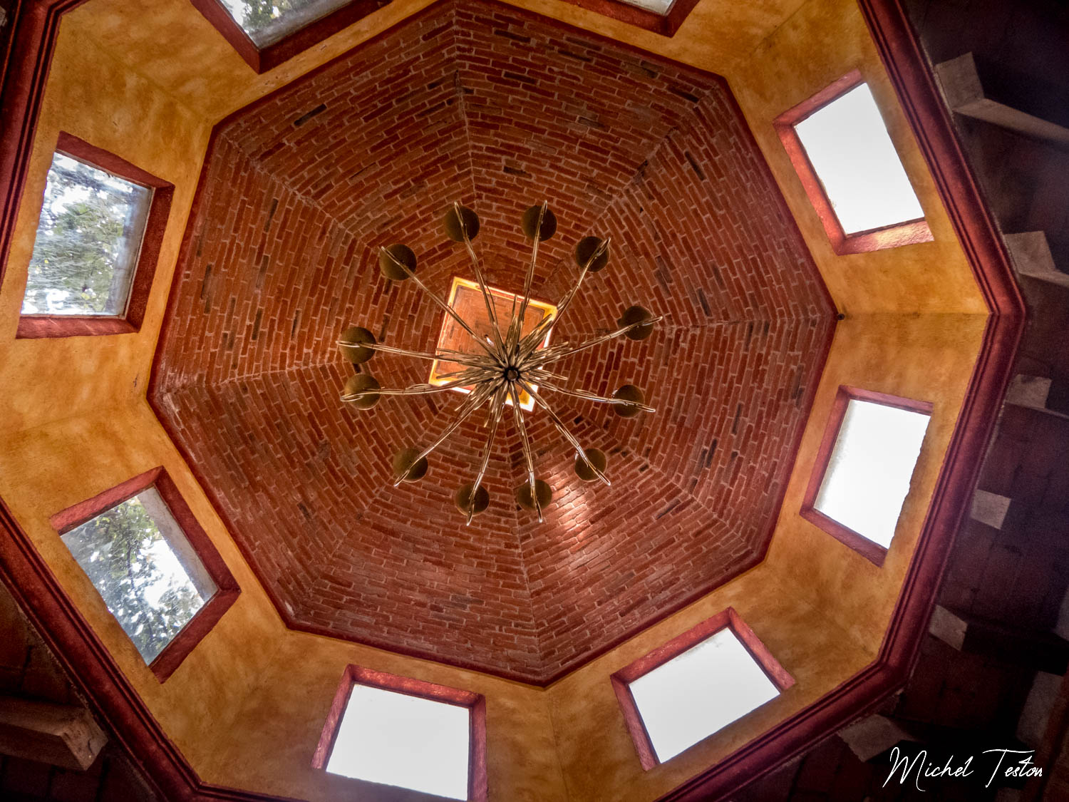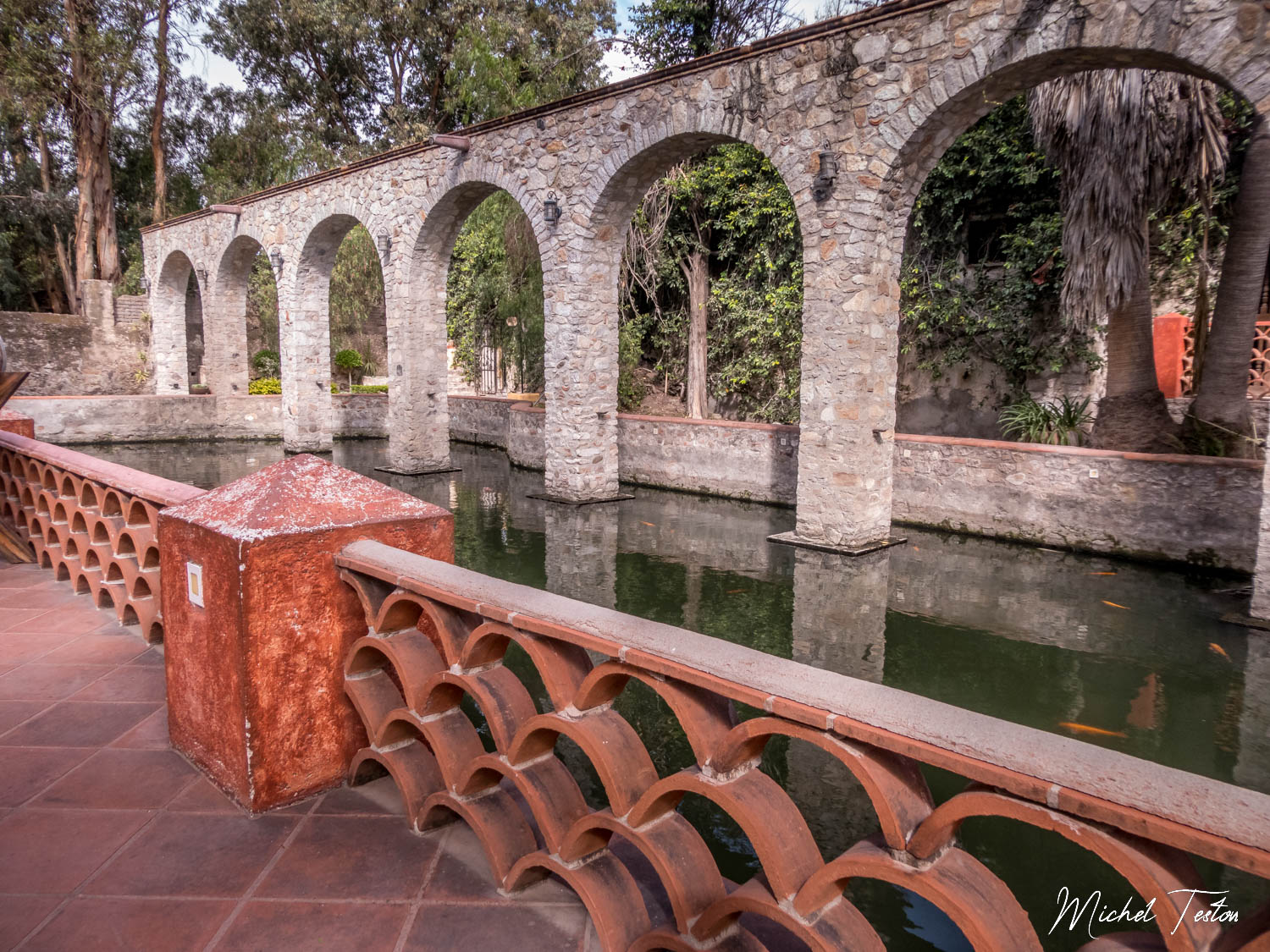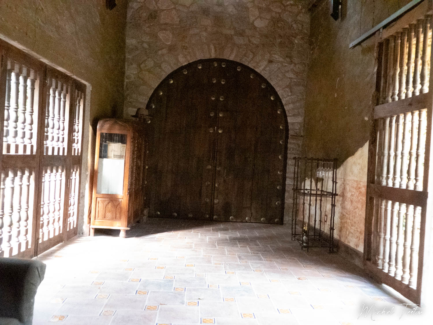 C’est une hacienda terminée en 1651. Hormis le fait d’être un vignoble, c’est aussi un lieu de restauration, de visite et d’évènement. On arrive à l’ouverture. Le lieu est désert. A l’entrée, le gardien prend son talkie walkie signale notre arrivée et lève la barrière.