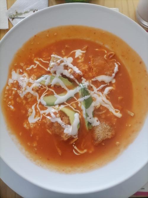 Fort de tous ces enseignements, un jour j’ai mangé des chilaquiles. C’est un plats qui trempé dans la sauce soit verte ou rouge. J’avais pris rouge. Je mangé mon plat et je le trouvé doux alors que Maria le trouvait très fort !