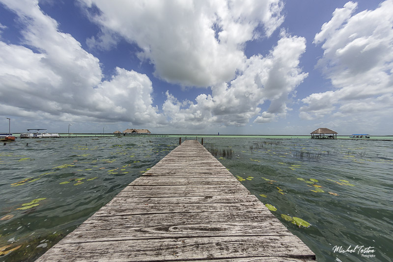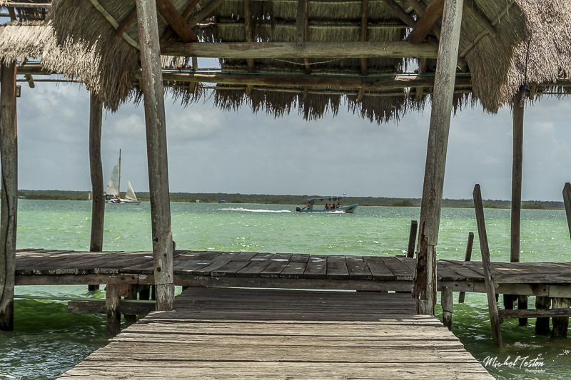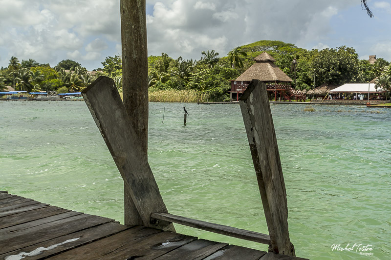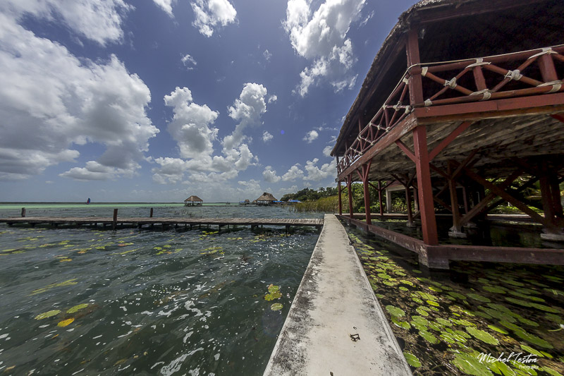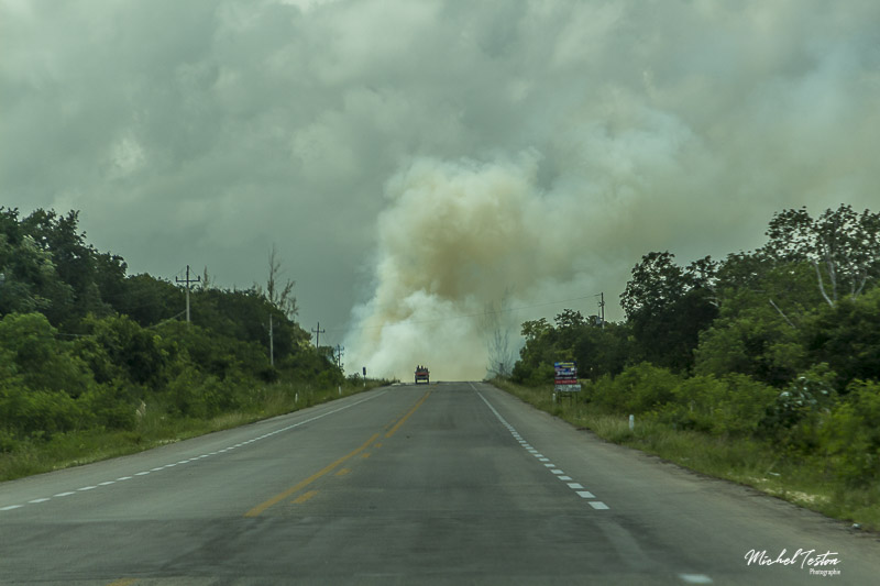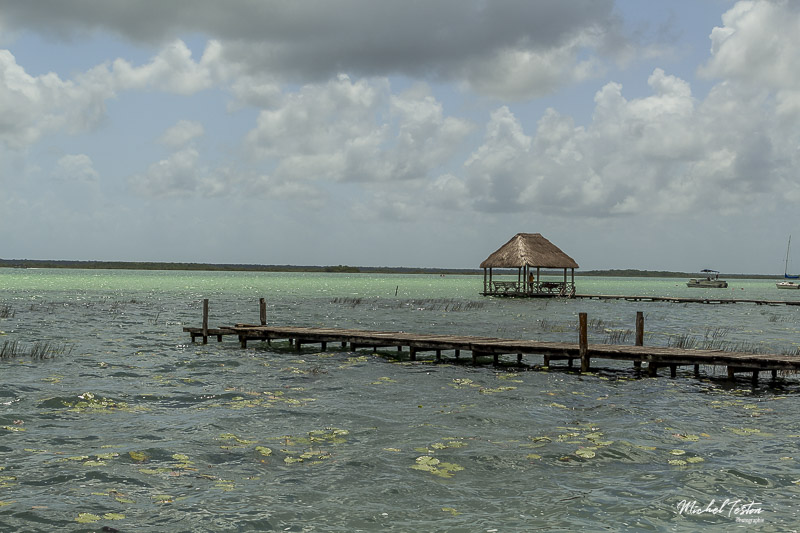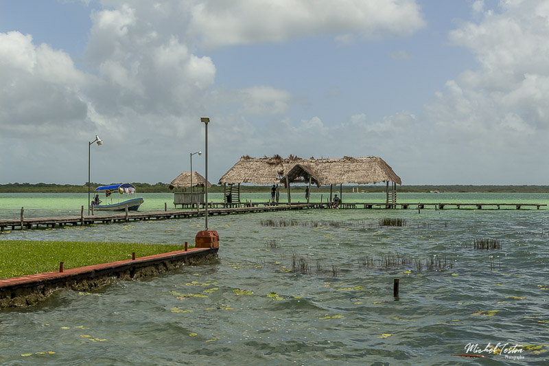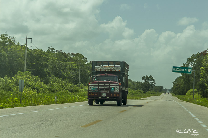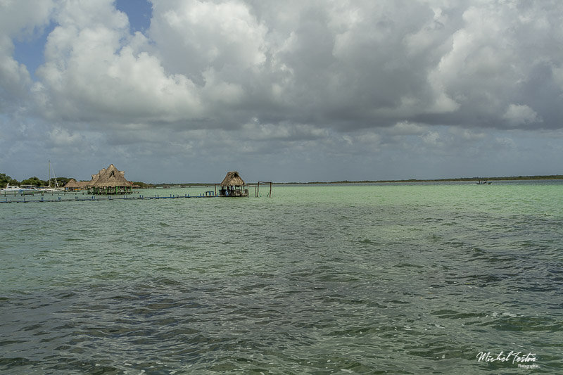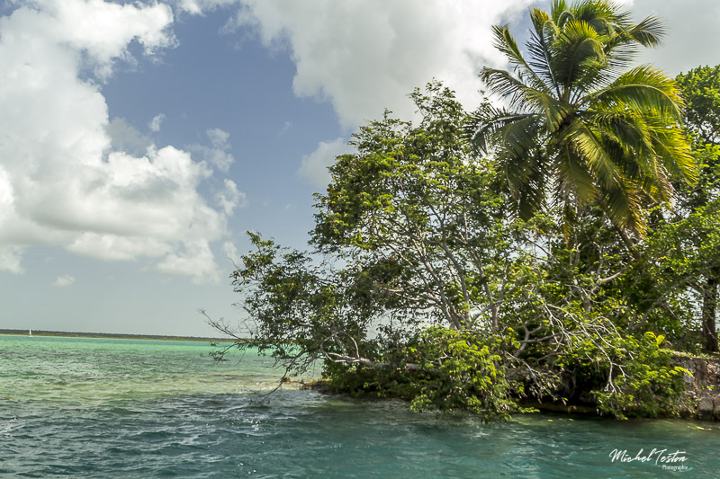 L’itinéraire est simple la route 307 en direction de Chetumal et de la frontière du Belize. Ce n’est implicitement la ville de Bacalar qui nous intéresse mais son lagon au sept nuances de bleu. C’est les derniers jour de la saison des pluies. On en reparlera mais la pluie n’est pas forcement synonyme de mauvais temps,. mais souvent d’une courte pause dans l’excès de température. En tout cas pour moi ! En route on prend donc notre petite averse ( parfois elles sont beaucoup plus grosses!!!) .